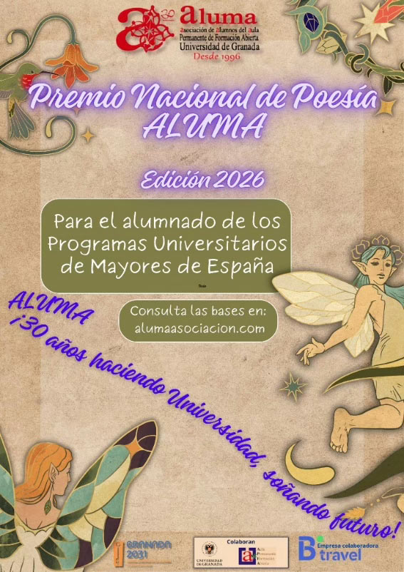 Nuestra asociación hermana del Aula Permanente de la Universidad de Granada ALUMA ha lanzado su concurso anual de Poesía con la siguiente comunicación a todas las universidades senior de España: