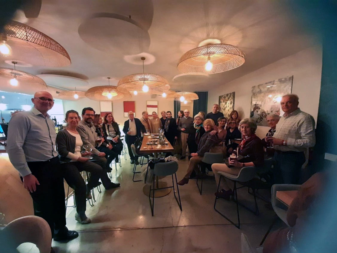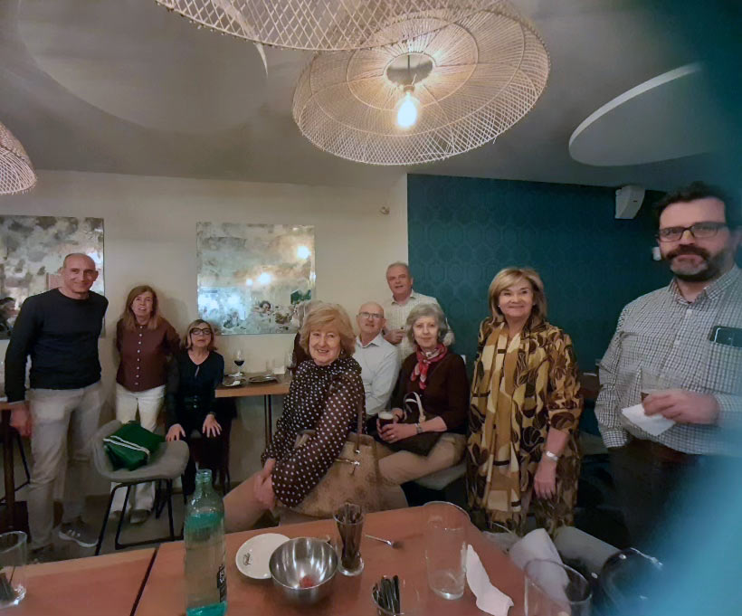 También en marzo se reunió el grupo de conversación en italiano para su comida mensual en el restaurante Just Italia Chamberí cerca de Comillas. Cada vez invitamos a un nativo y esta vez tuvimos la suerte de tener dos. Al fondo una cara muy conocida, Angelo Valastro junto con Tatiana Carozza, profesora del Istituto Italiano di Cultura. De un lado al otro de la mesa se mantuvieron animadas conversaciones en italiano durante un par de horas….
